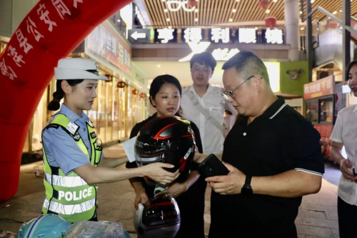 活动中,民警结合“一盔一带”交通安全宣传主题,用“宣传教育+赠送头盔”的方式,向大家积极宣传驾乘电动车摩托车佩戴安全头盔的重要性,引导广大群众树立“头盔就是保命盔”的意识。