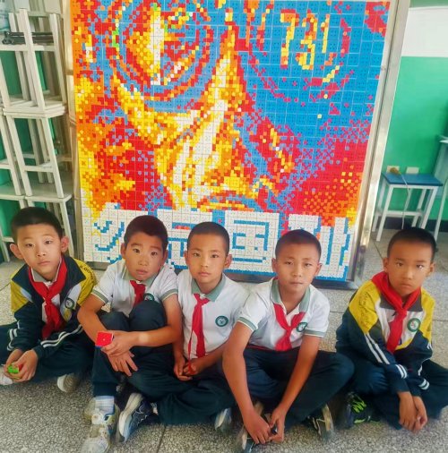 9月15日 在电影《731》上映前夕,新疆小白杨中学魔方社团的同学们以一场别开生面的活动,展现了对历史的深刻铭记与敬畏。9月15日下午,该校魔方社团的李家乐、张珺捷、赵世杰、蒙克达拉、王斯栋、杨钦睿、张轩浩、包昊琛、赵沐杨等同学,用650块魔方拼出了《731》影片海报,并将“勿忘国耻”四个大字醒目地展现出来。这幅特殊的拼图以影片海报为蓝本,通过魔方像素化方式再现了令人窒息的视觉冲击:毒气弥漫的背景